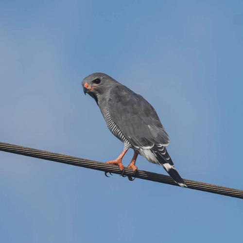 Op de elektriciteitslijn zien we de hagedisbuizerd, de lizzardbuzzard, een mooi roofvogeltje,, ik vind hem meer op een sperwer lijken dan op een buizerd