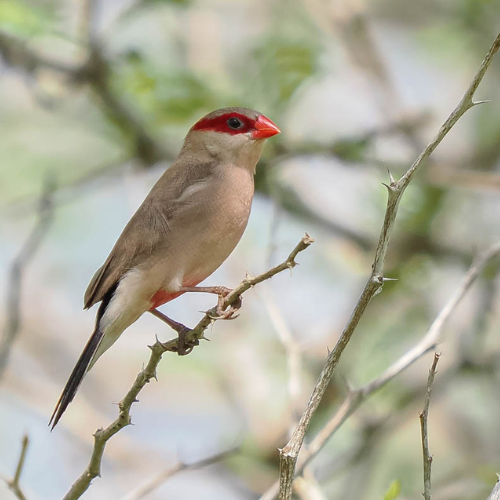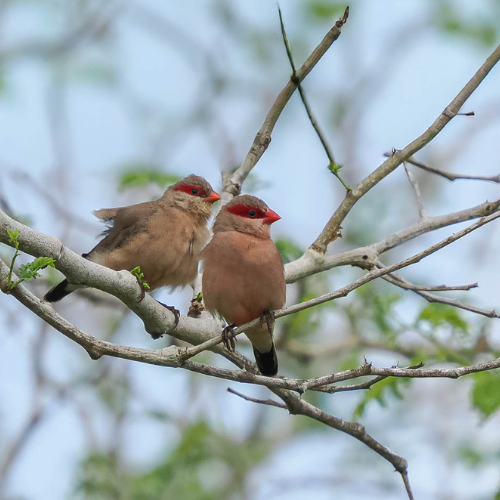 Onderweg zien we veel bisschoppen vliegen, geen echte natuurlijk, maar van die mooie gekleurde, in broedkleed zijn ze schitterend oranje-rood gekleurd, the northern red bishop en the black-winged red bishop (zie onderstaand)