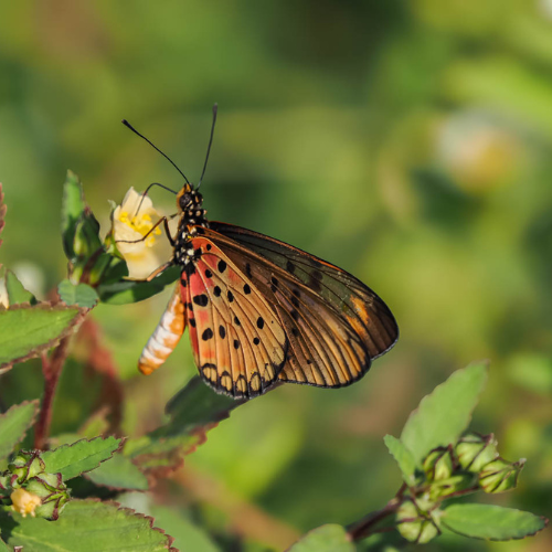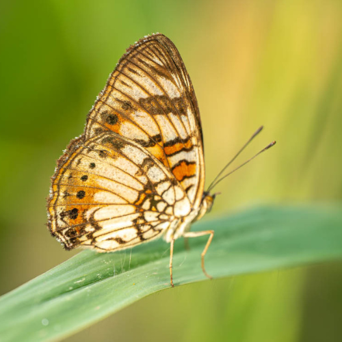 We zagen de Zwaluwstaartbijeneter, herkenbaar aan zijn elegante blauwe accenten en de sierlijke, lange zwaluwstaart. Verder fladderde de Little Commodore (Junonia sophia) om ons heen — een subtiele maar prachtige vlinder.