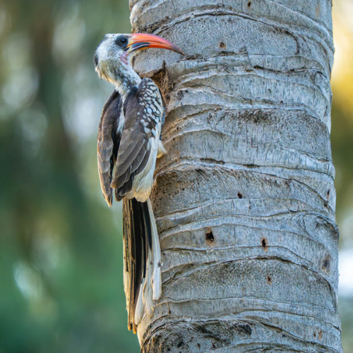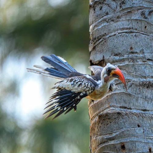 De volgende dag, donderdag, bezoeken we de prachtige fotohut van Han Bouwmeester, op ongeveer drie kwartier rijden van Hotel Senegambia. Het is een schitterende locatie, omringd door cashewbomen en met prachtig, zacht licht. Het duurt even voordat de vogels hun weg naar de hut vinden, maar zodra ze verschijnen, blijft het een komen en gaan!