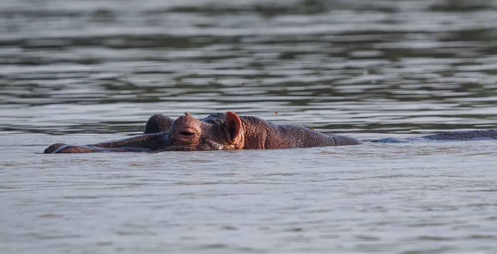 Hoog water dus de bullebakken waren slecht te zien, de nijlpaarden lagen lekker te dobberen.