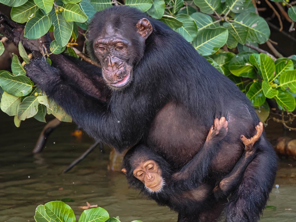 Het diner bestond uit Kip met rijst of frietjes, ontbijt was ook goed, anders dan Senegambia Beach, maar dat is gewoon zo in het binnenland en daar maken we ons niet druk om. Deze locatie ligt aan de Gambia rivier, waar we op zoek gaan naar de Chimpansees en de bavianen, een Chimp Rehabilitation Project aan de oevers van de Gambia Rivier