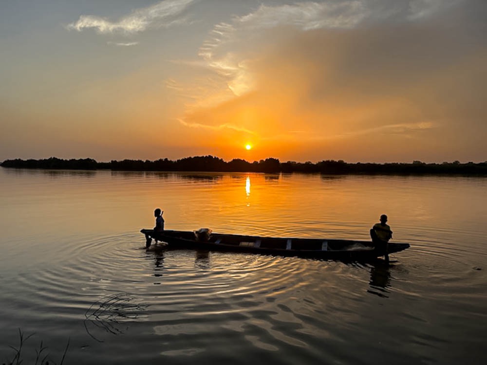 Zonsondergang aan de Gambia Rivier bij Kuntaur